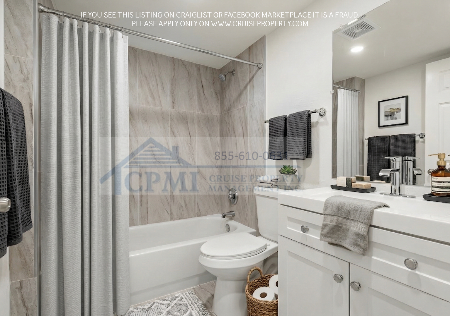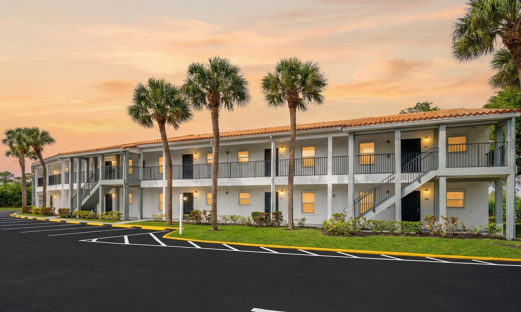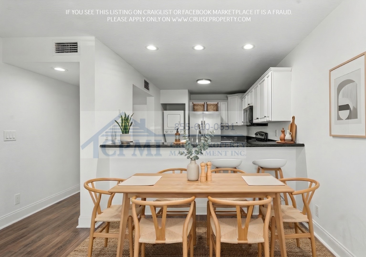 Each residence features a bright and open floor plan designed for both comfort and functionality. The bedrooms include spacious closets, while the kitchen is appointed with granite countertops and stainless-steel appliances. Additional features include a private washer and dryer, private balconies, and a combination of tile and laminate flooring throughout the unit.